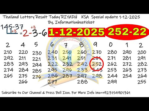 Thailand Lottery Result Today RIYADH KSA Special update 1-12-2025 By, InformationBoxTicket